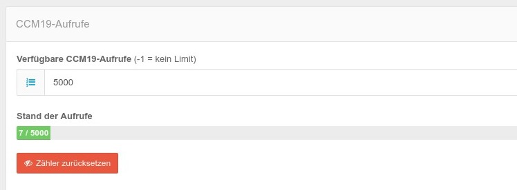 Es wird hier die tatsächliche Anzahl der Aufrufe angezeigt und ein Button um den Zähler für den aktuellen Monat zurückzusetzen.